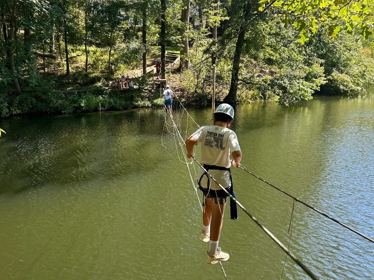 Set your team building goals and we'll set the stage for growth. Our morning low ropes course focuses on building teamwork and problem-solving through engaging challenges led by our expert facilitators. After lunch, soar to new heights on our high ropes course, pushing boundaries and inspiring confidence in the woods. Each day concludes with reflection to apply newfound skills to real life.